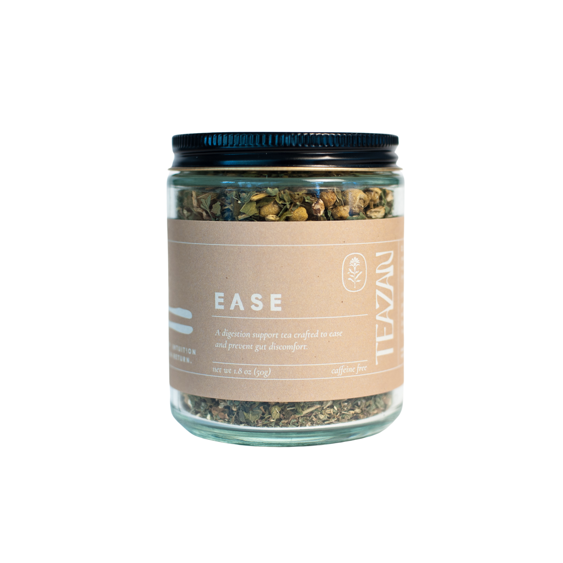 Ease is thoughtfully formulated to support digestive wellness and soothe discomfort in the gut. Spearmint offers gentle relief from bloating and promotes relaxation in the digestive tract. Dandelion root supports healthy liver function and aids in digestion by stimulating bile production. Fennel seed helps reduce gas and cramping while promoting smooth digestion. Lemon balm provides calming support for the digestive system, easing stress-related discomfort. Licorice root coats and soothes the gut lining, while ginger root adds warmth and stimulates digestion. Chamomile rounds out the blend with its calming and anti-inflammatory properties, making this tea a warming and comforting ritual for your body’s center.