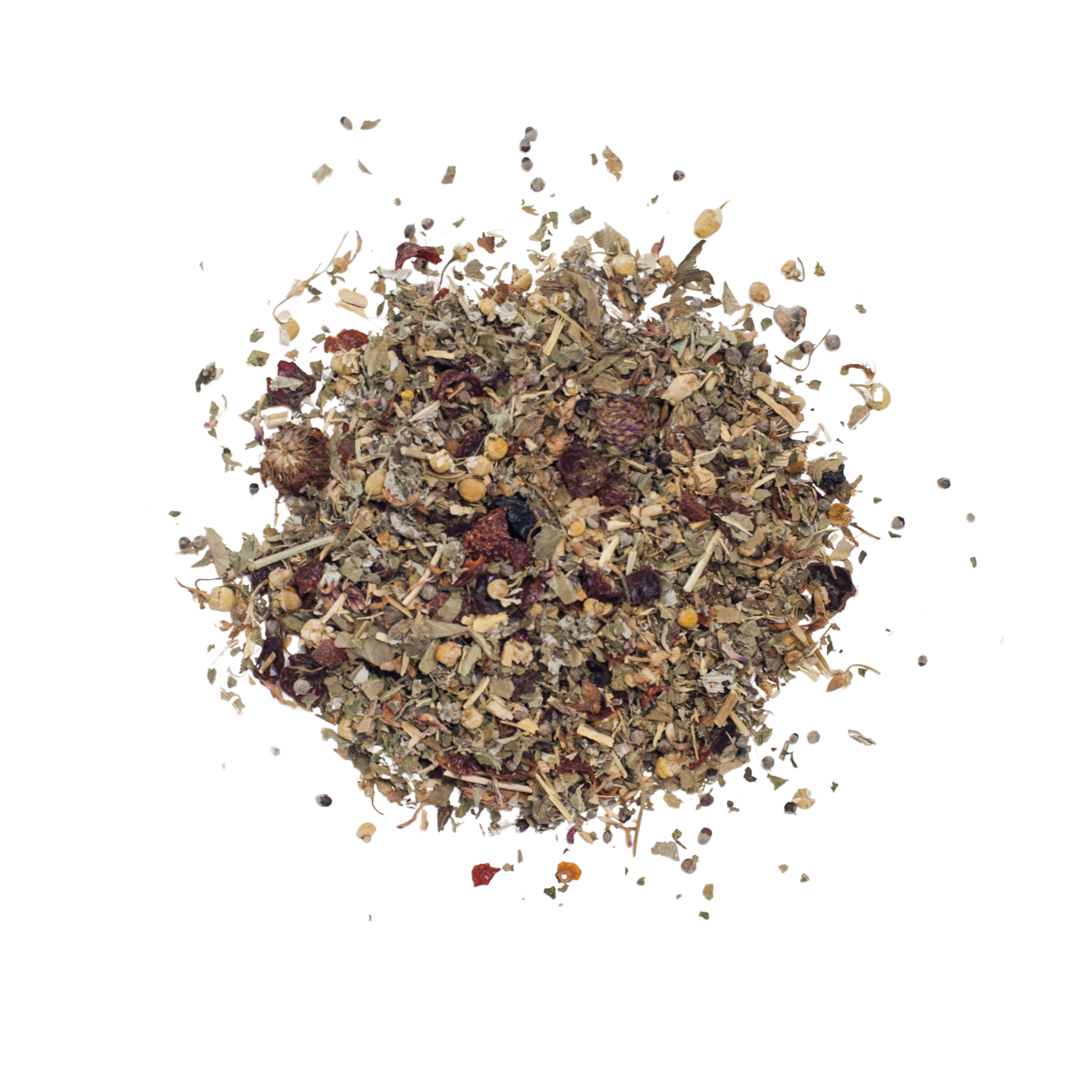 Rosehip*, Vitex Berries*, Red Raspberry Leaf*, Chamomile*, Licorice Root*, Red Clover Tops*, Lady’s Mantle*