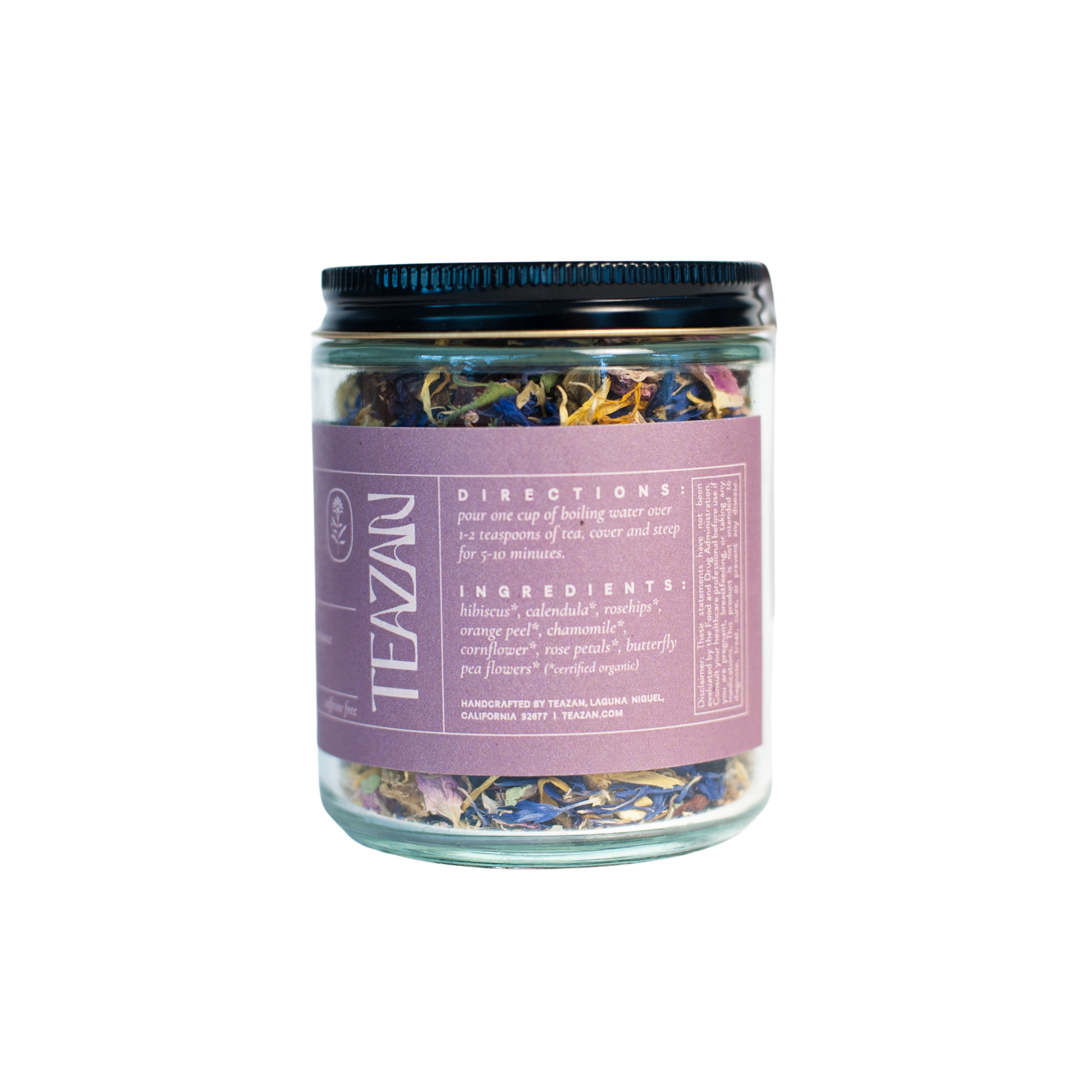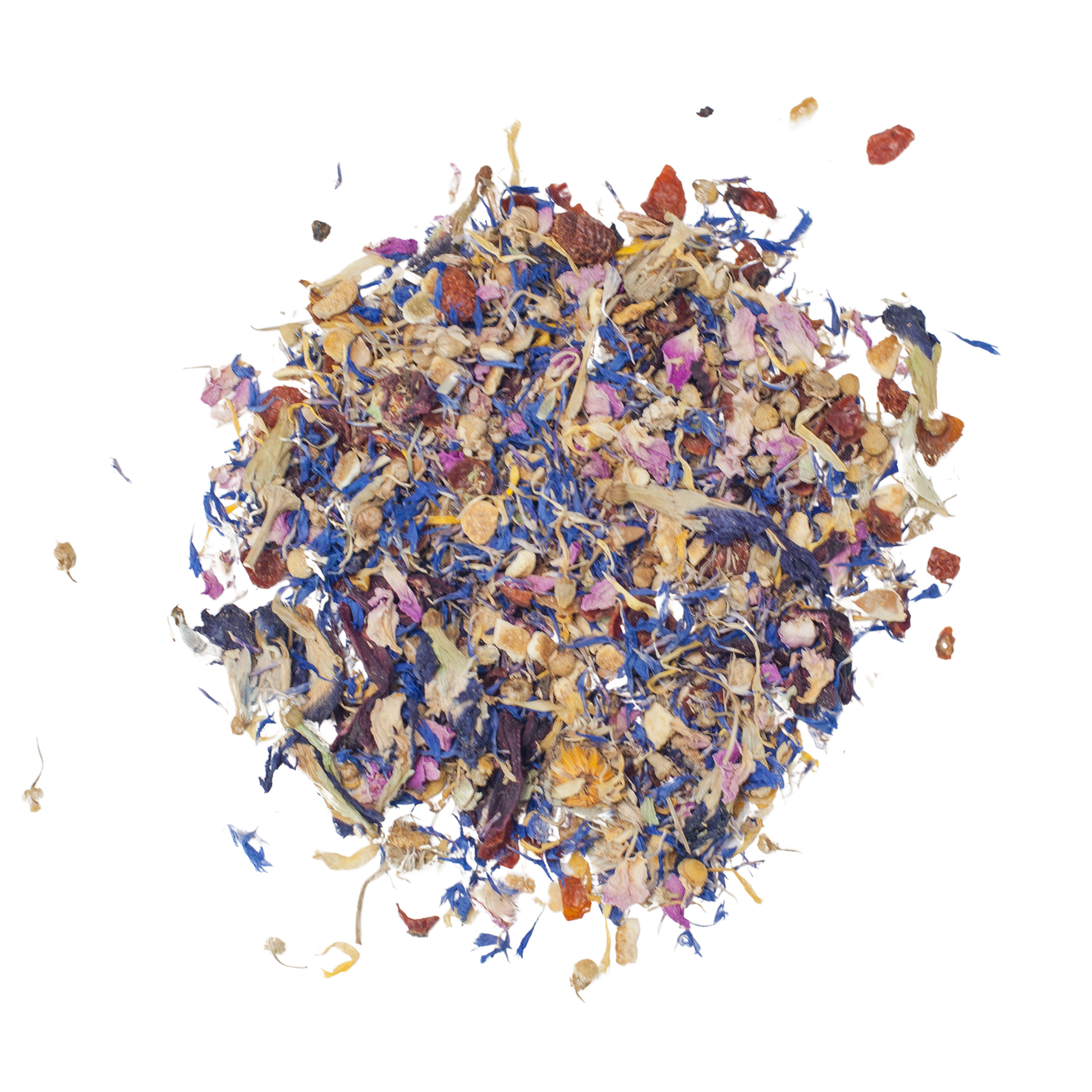 Hibiscus*, Calendula*, Rosehips*, Orange Peel*, Chamomile*, Cornflower*, Rose Petals*, Butterfly Pea Flowers*