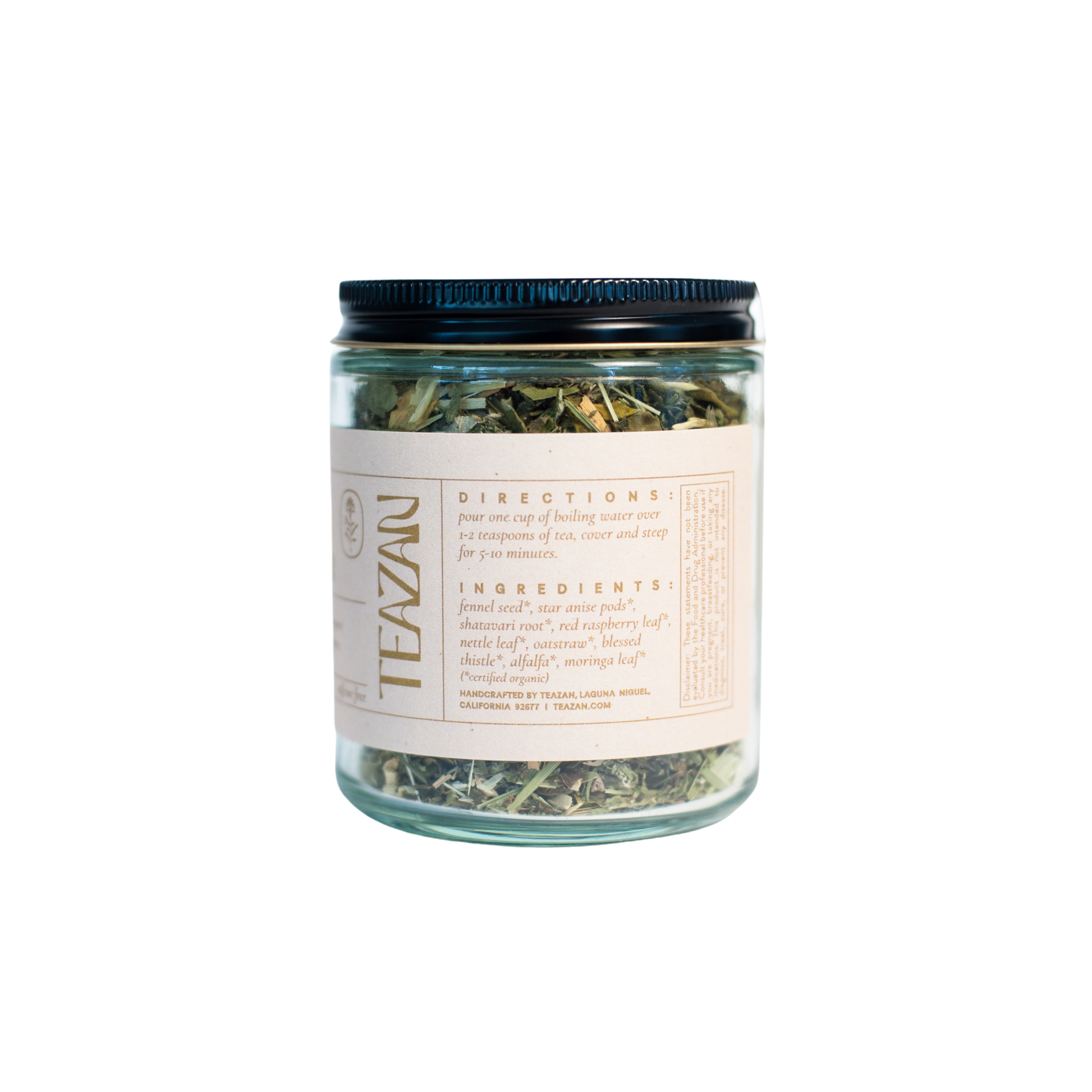 Fennel Seed*, Star Anise Pods*, Shatavari Root*, Red Raspberry Leaf*, Nettle Leaf*, Oatstraw*, Blessed Thistle*, Alfalfa*, Moringa Leaf*