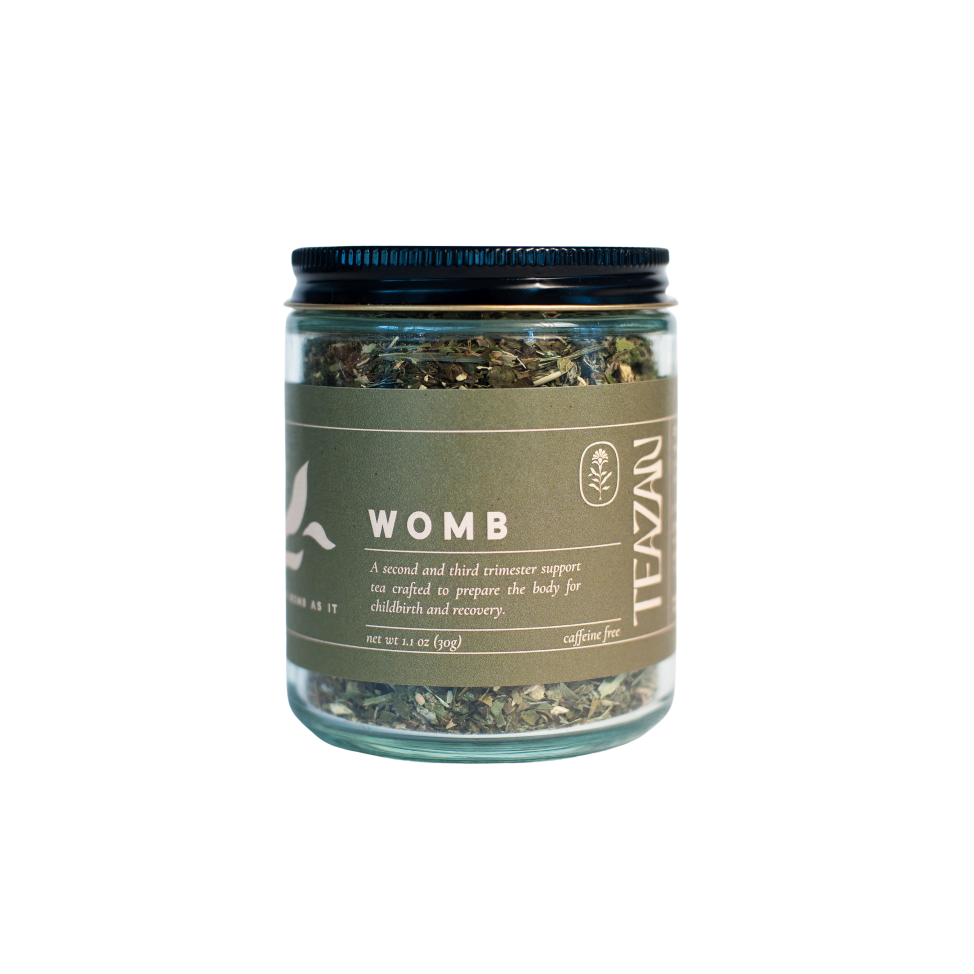 Womb is mindfully formulated to support the unique needs of pregnancy, specifically during the second and third trimesters in preparation for birth. Red raspberry leaf is the mother herb in this blend, rich in nutrients such as iron, magnesium, and fragarine, which help strengthen and tone the uterus in pregnancy and childbirth. Ginger root and spearmint provide gentle relief from lingering nausea and promote healthy digestion. Nettle leaf offers an abundance of vitamins and minerals, including iron, to support energy levels and a healthy pregnancy. Oatstraw provides nourishing support to the nervous system, while vitamin- and mineral-rich alfalfa contributes essential nutrients, such as iron and Vitamin K, to support the womb and overall health during pregnancy and recovery.