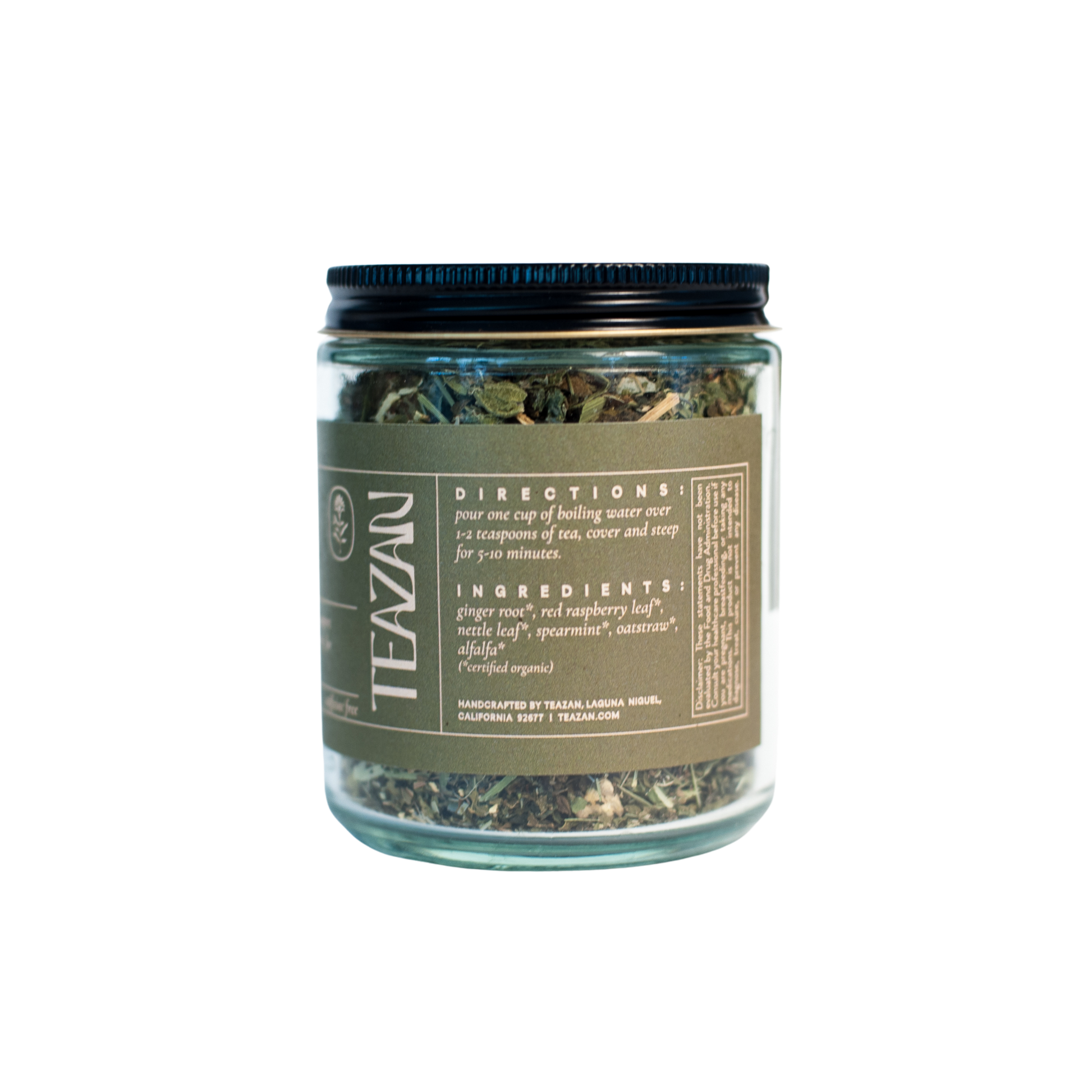 Ginger Root*, Red Raspberry Leaf*, Nettle Leaf*, Spearmint*, Oatstraw*, Alfalfa*